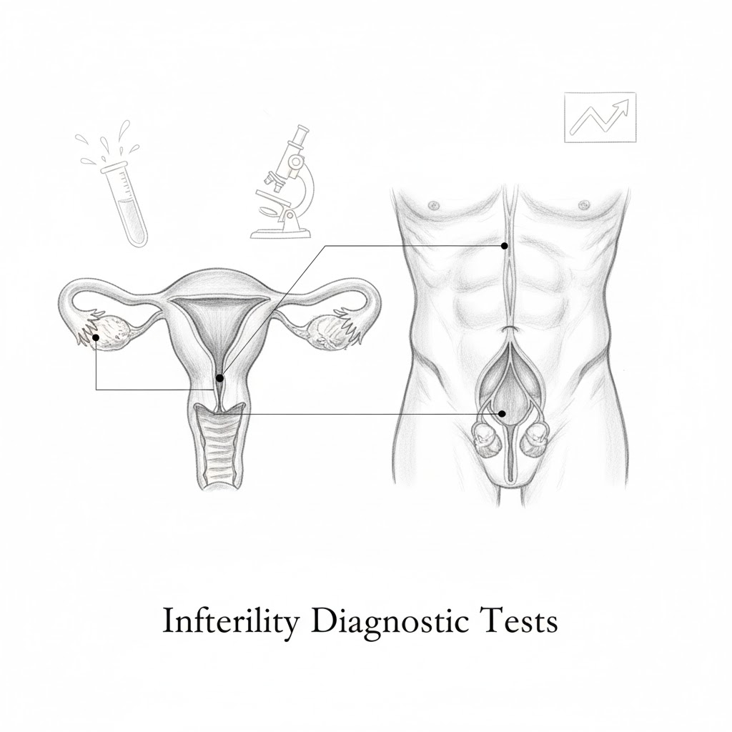Infertility evaluation is a series of medical tests and assessments that help identify why a couple is facing difficulty conceiving. It examines both female and male reproductive health, hormonal balance, ovulation, and other related factors.